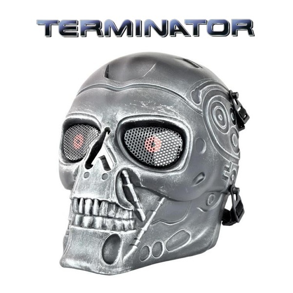 Superbe masque tactique tiré de la saga Terminator (depuis 1984) et représentant la tête d'un T-800, le redoutable Terminator (Arnold Schwarzenegger) venu du futur pour tuer la mère de John, Sarah Connor (Linda Hamilton)... De la marque "Wosport", cette solide réplique en taille réelle a été soigneusement conçue à partir du T-800 que l'on voit dans les films avec une attention particulière portée aux détails et aux finitions. Résistant aux chocs, le masque est entièrement fabriqué en ABS avec une finition grise métallisée. Réglable avec des sangles élastiques, il comporte à l'intérieur une couche de protection en caoutchouc. Les yeux sont protégés avec des grilles en métal qui sont peintes en rouge au milieu. Le système de respiration est optimisé grâce à des ouvertures spéciales garantissant également une excellente protection. Idéal pour l'airsoft, le cosplay ou les loisirs, cette reproduction de haute qualité ravira les fans de la saga et les collectionneurs de masques réalistes. À votre tour de devenir le célèbre assassin cybernétique !